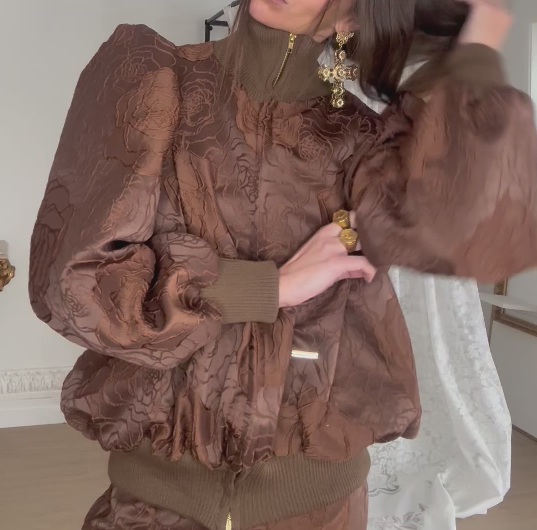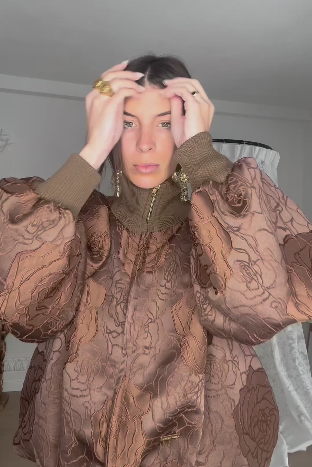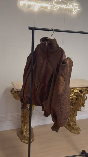 Bomber oversize com gola e punhos com acabamento em elástico.