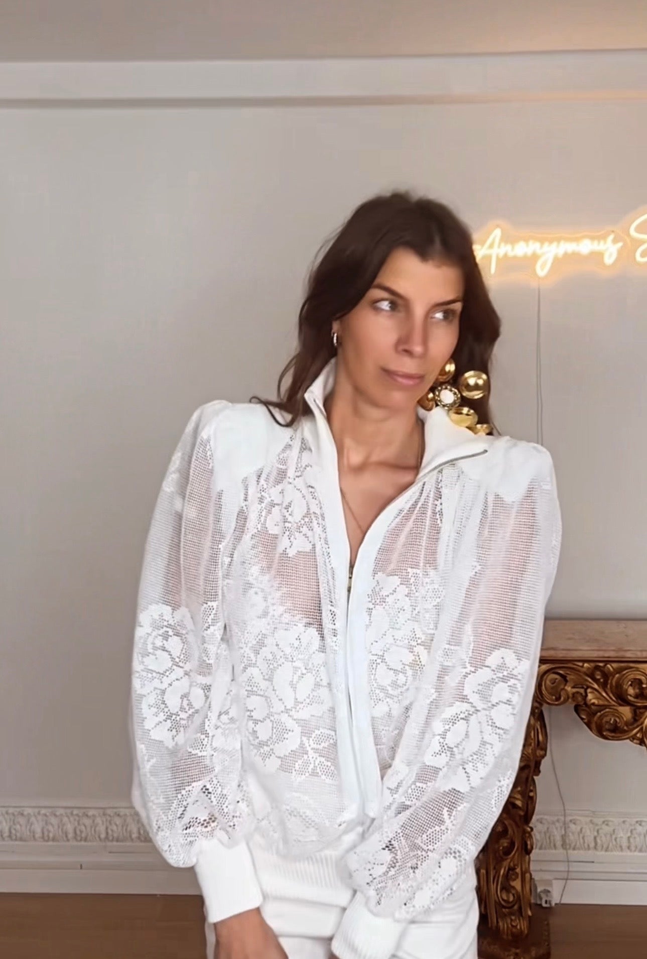 Fecho de correr frontal dourado .